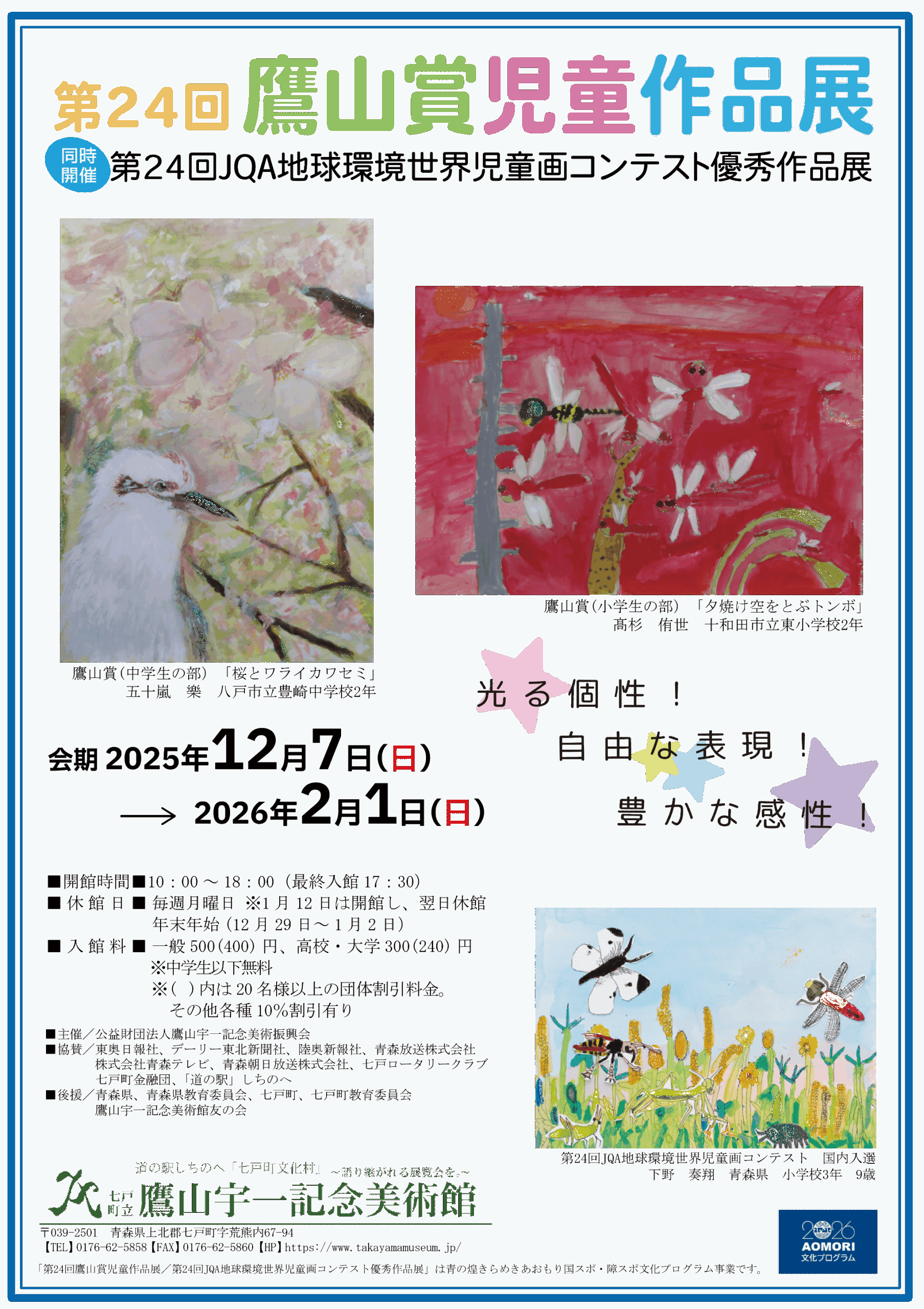 青森県内の小中学生に作品を公募する絵画コンテスト「鷹山賞児童作品展」は、本年第24回を迎えました。
